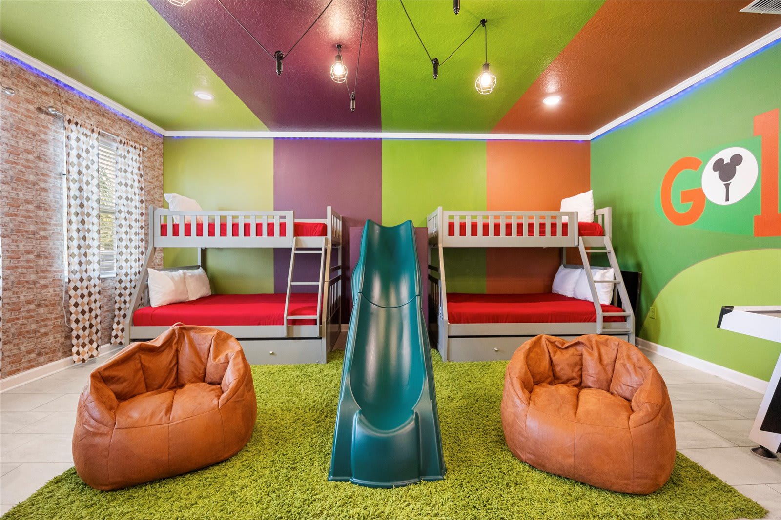 Bedroom 4: Mickey Golf Room – Two sets of bunk beds – 2nd Floor