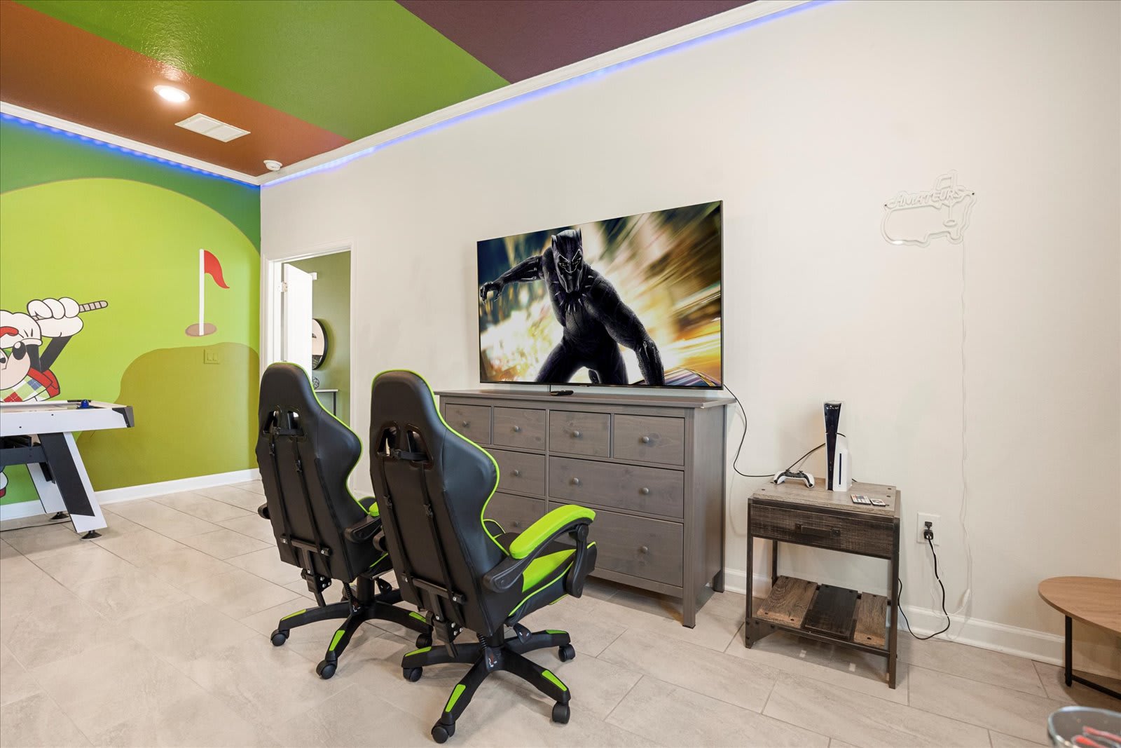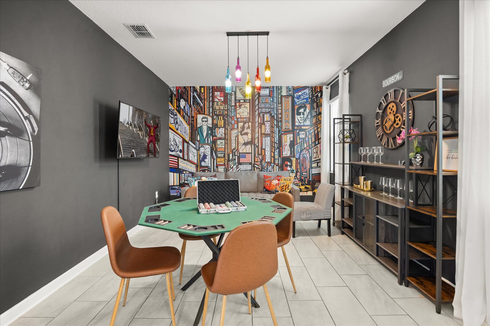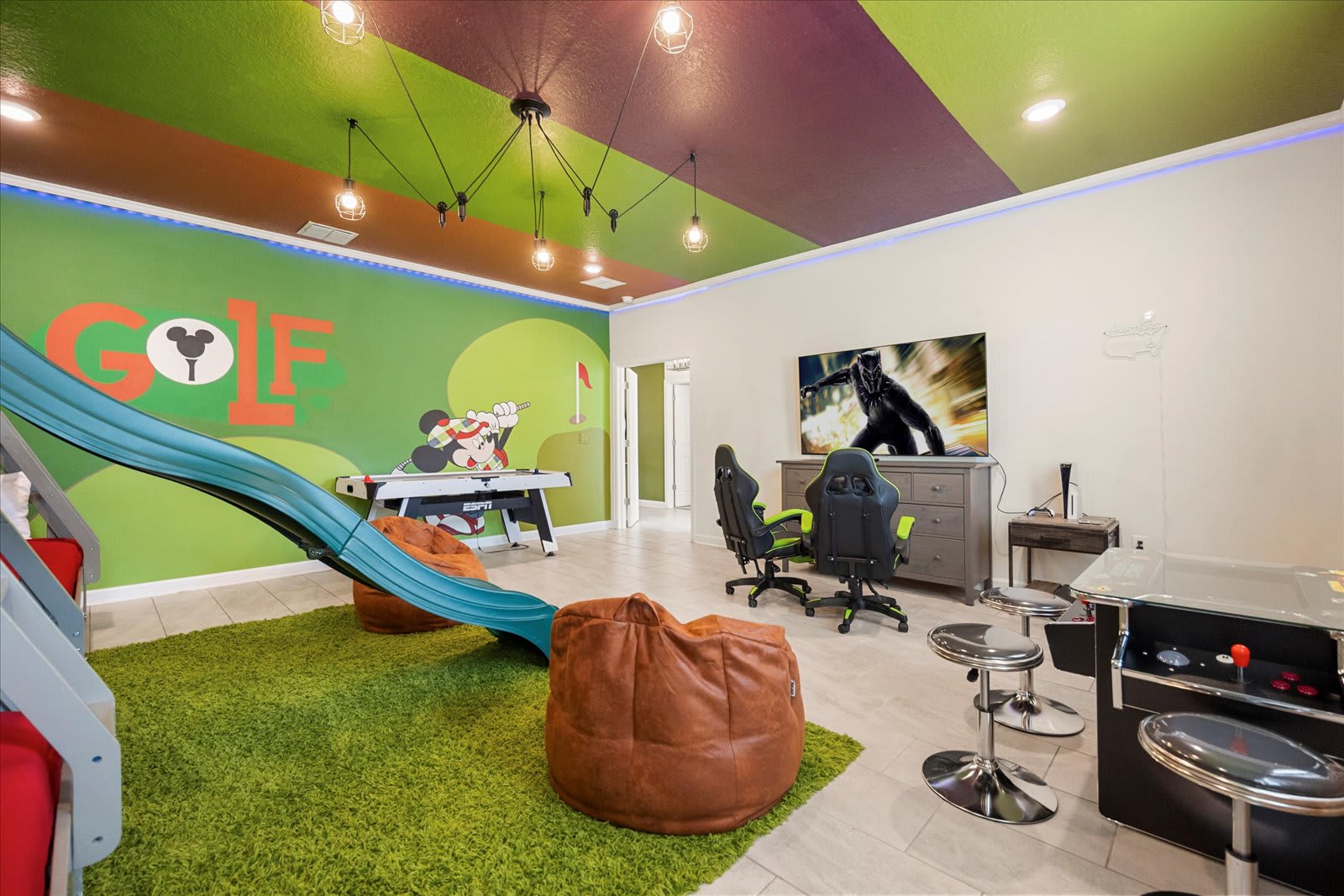 Dive into luxury at our 7-bedroom retreat in Champions Gate. This isn’t just a house; it’s your home base for unforgettable Orlando adventures. Unwind by the private pool, challenge friends and family to epic gaming showdowns, or explore the nearby magic of Disney World.
