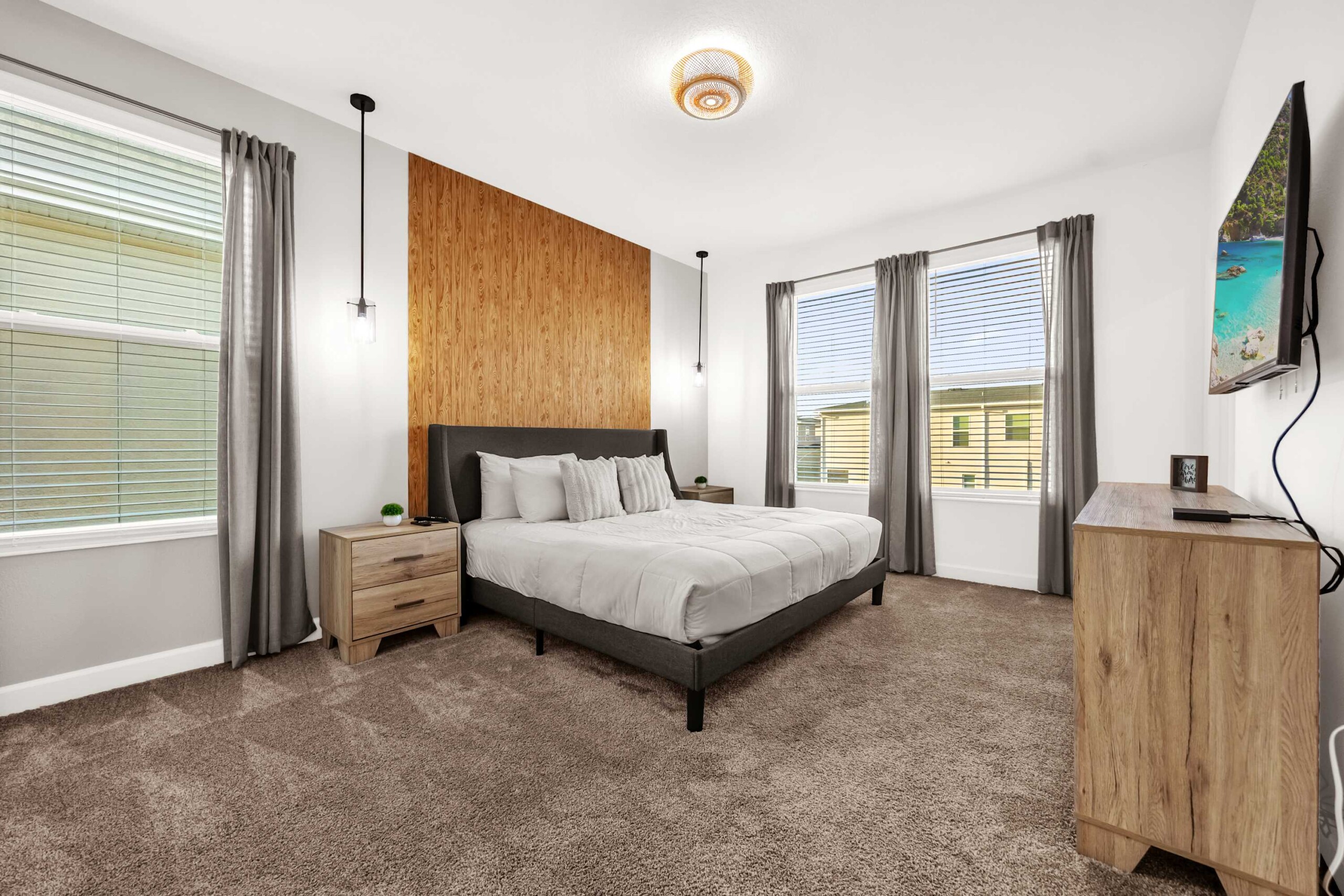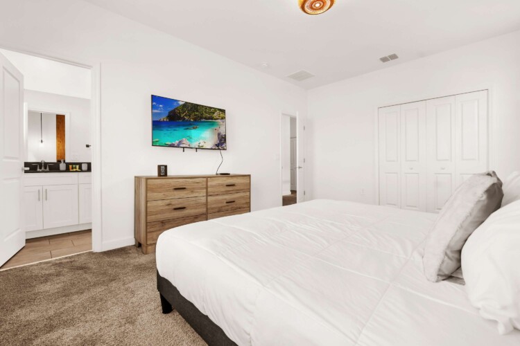 Step inside and experience modern elegance with beautifully furnished rooms and stylish décor. The open-concept living area and kitchen provide the perfect space for family gatherings—whether you’re watching the big game, sharing stories from an exciting day, or simply unwinding together. Outside, take a refreshing dip in the private pool and spa while enjoying your favorite shows on the outdoor smart TV with your loved ones.