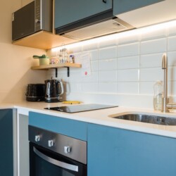 – **Bathroom**: Refresh in the sleek bathroom, complete with hot water and a hair dryer for your grooming needs.