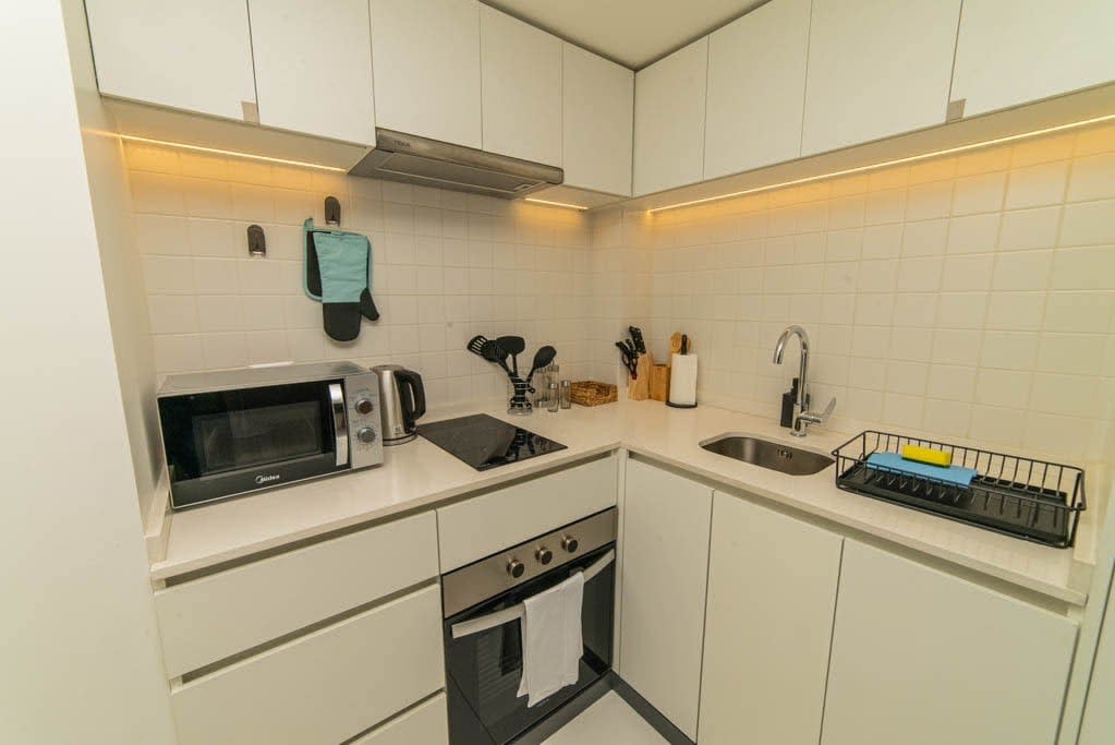 Our apartment is fully furnished and equipped to make you feel at home. It includes a kitchen equipped with a two-burner induction stove, electric kettle, toaster, coffee maker, and basic kitchen utensils for cooking or preparing snacks at any time. Additionally, if you’re traveling for work, don’t worry, we have 500 mb internet, perfect for your stay.