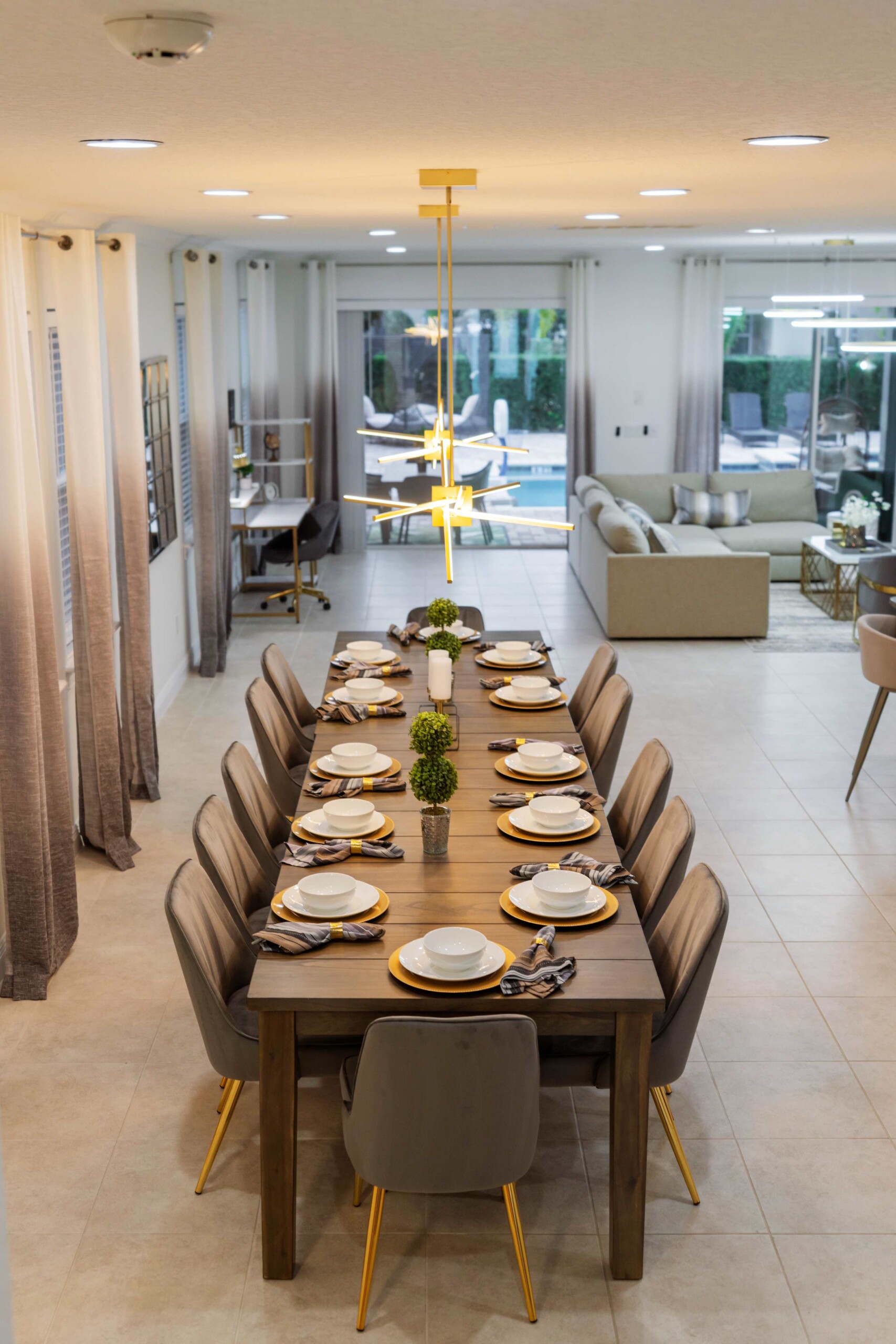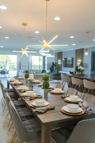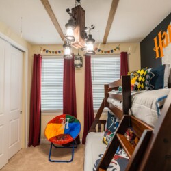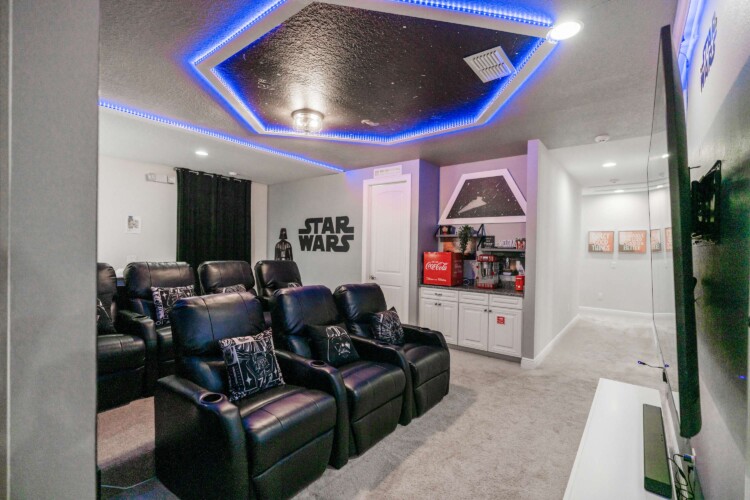 This amazing 9 bedroom 8 bathroom luxury home is located in the Encore Resort. We’ve created the perfect space to live the Disney dream! This home has three themed bedrooms. Live your Frozen dream, enjoy a trip to Hogwarts, or fly through the galaxy with the heroes from Star Wars.