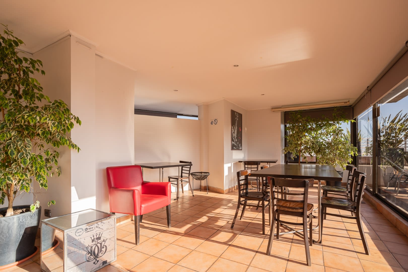 Our home is the ideal space for those seeking a peaceful and relaxing stay in Santiago. During your visit, you can enjoy our seasonal pool, open from December to March. We also have a multipurpose room for meetings or activities. The location is unbeatable, just steps from Tobalaba Metro, the Urban Market Tobalaba (MUT), the Costanera Center, and the Metropolitan Park.