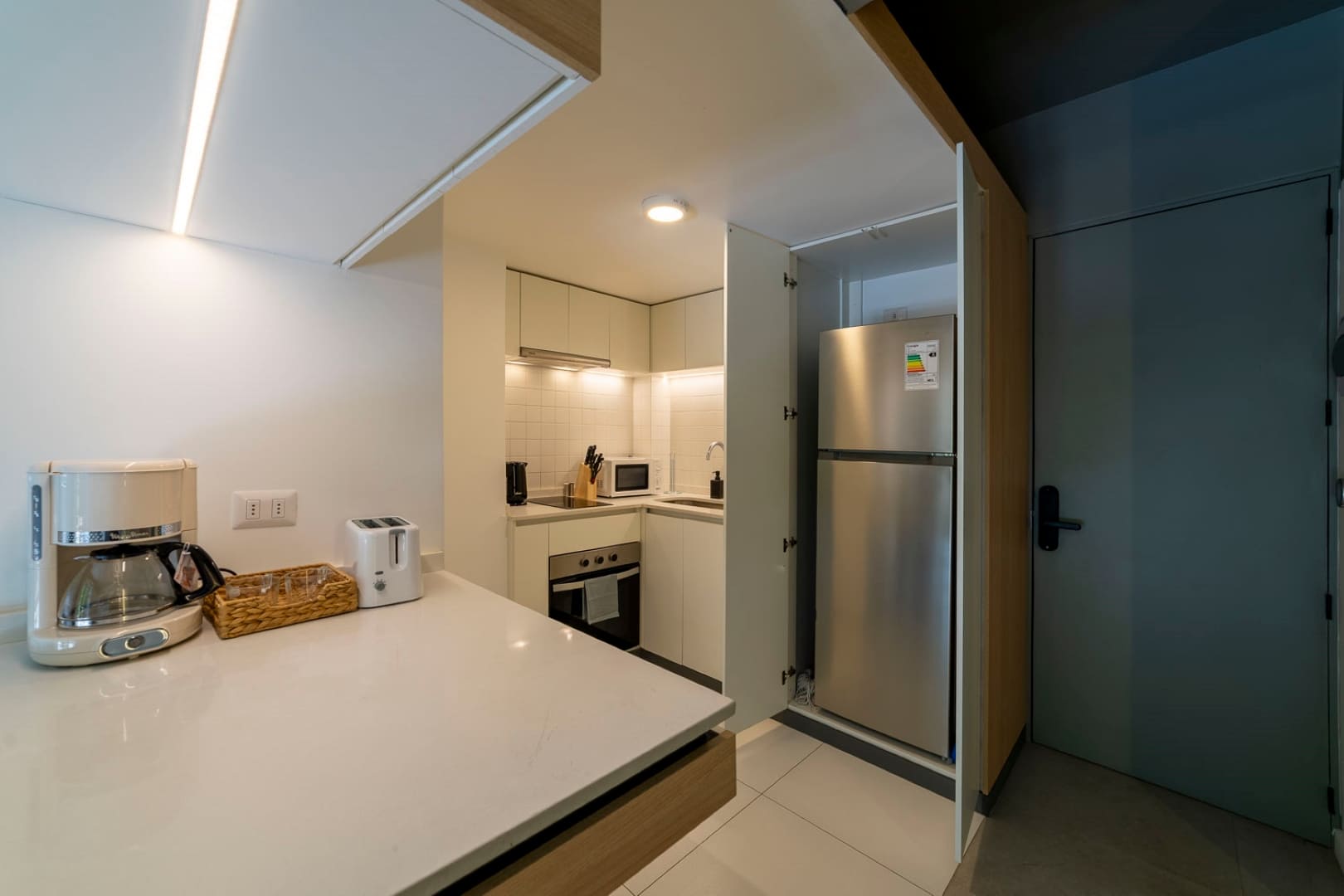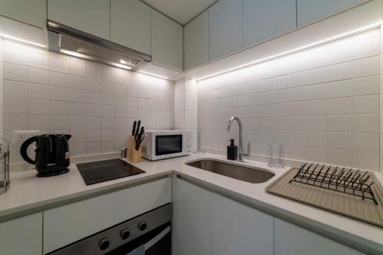 Our apartment is fully furnished and equipped to make you feel at home. It includes a kitchen with a two-burner ceramic cooktop, electric kettle, toaster, coffee maker, and basic kitchen utensils to cook or prepare snacks anytime. Also, if you’re coming for work, don’t worry, we have internet so you can stay connected during your stay.