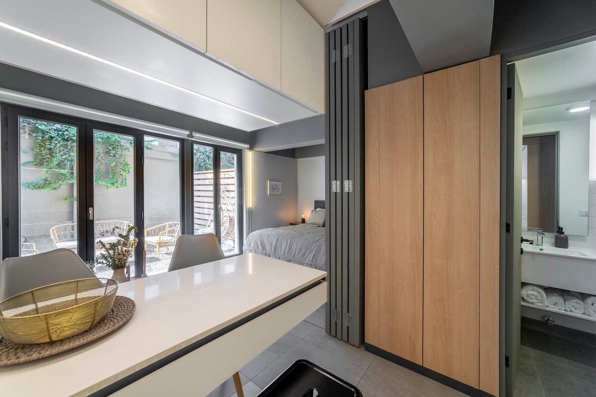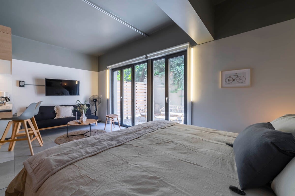 The studio is spacious and bright, with a double bed perfect for couples or business trips. We provide linens and towels so you don’t have to worry about anything.