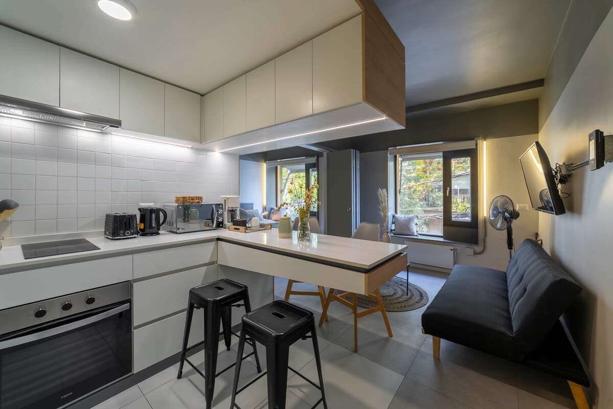 Our apartment is fully furnished and equipped to make you feel at home. It includes a kitchen equipped with a two-burner induction stove, electric kettle, toaster, coffee maker, and basic kitchen utensils for cooking or preparing snacks at any time. Additionally, if you are traveling for work, don’t worry, we have internet connection perfect for your stay.