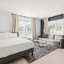 Experience the vibrant energy of Miami Beach with easy access to the sun-drenched shores. This thoughtfully designed studio features a king-size bed, a queen bed, and a sofa bed, providing comfortable accommodation for families or friends. Complete with a well-appointed kitchen, everything you need for a stylish and enjoyable stay is at your fingertips.