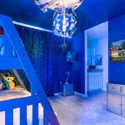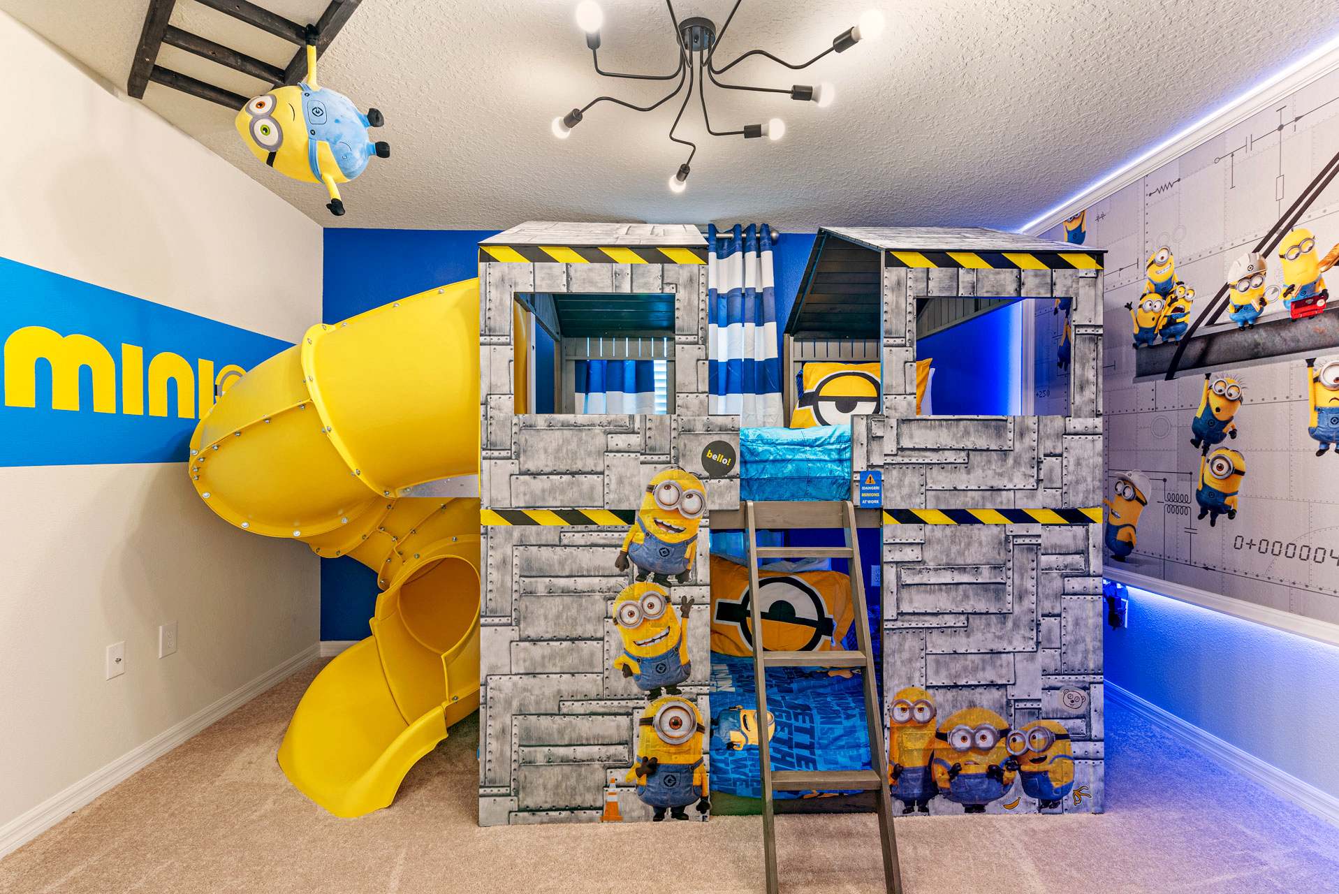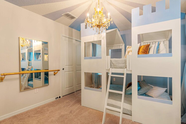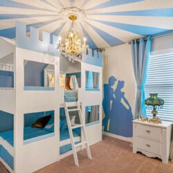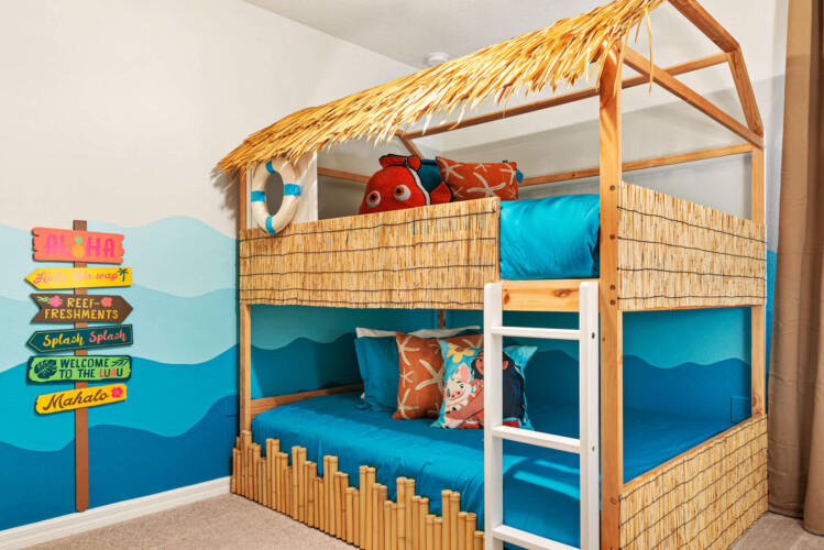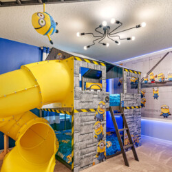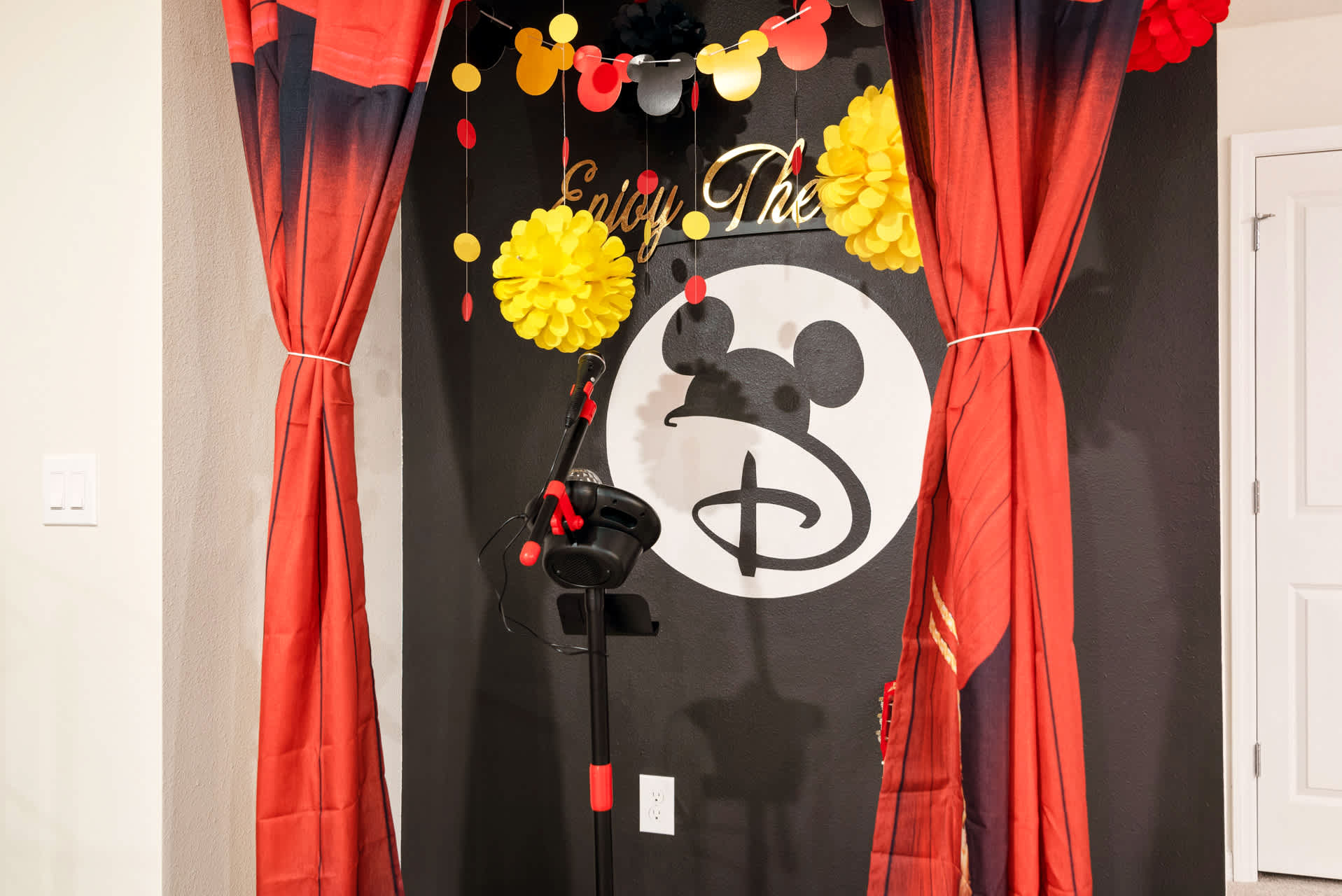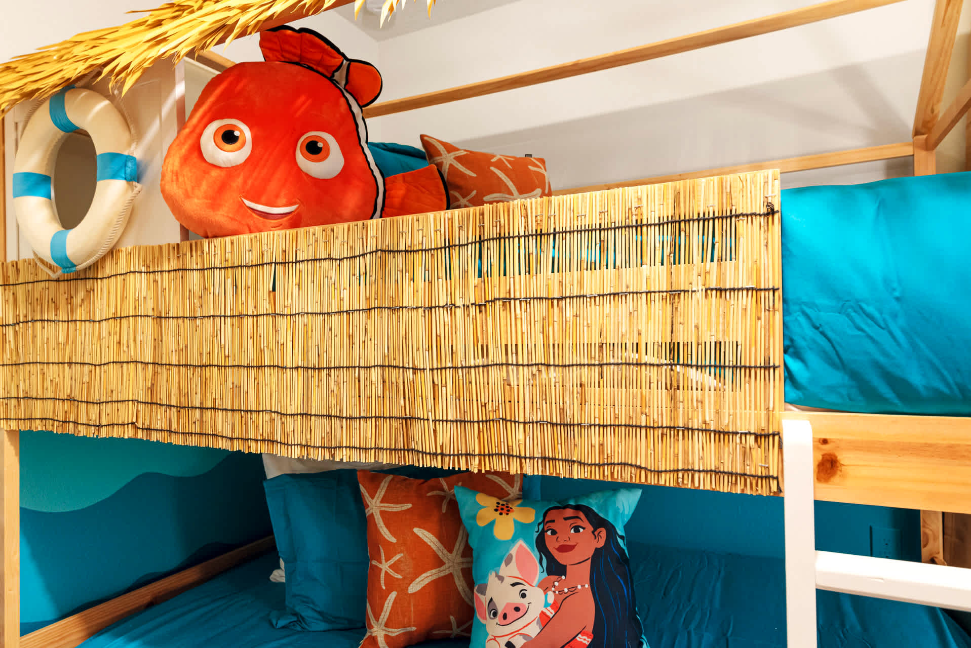 Enjoy the superhero-themed game room and a second-floor kids’ corner with a magical Mickey karaoke stage. Sleeping arrangements include: