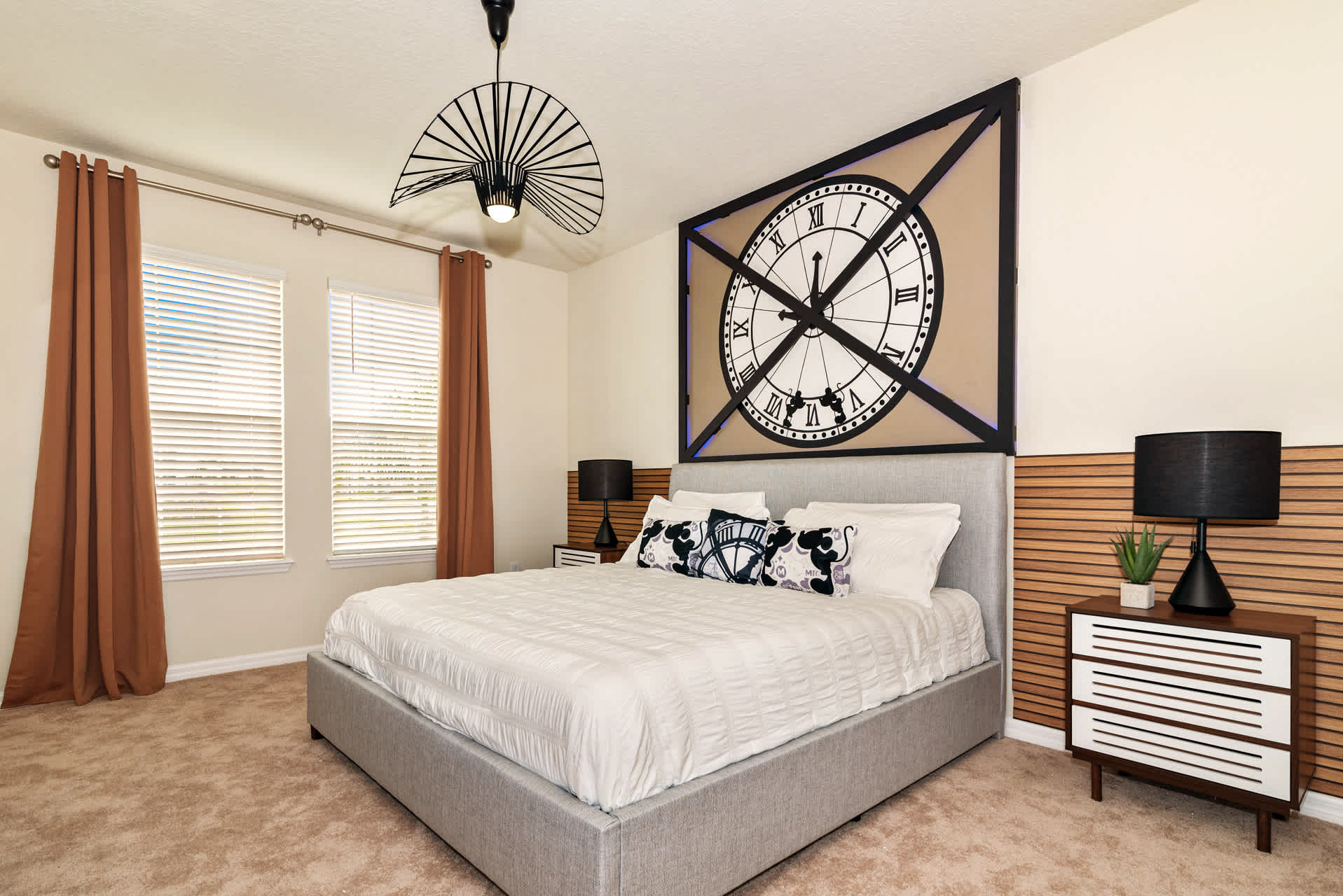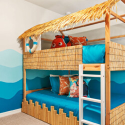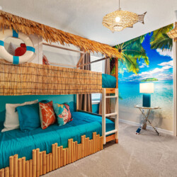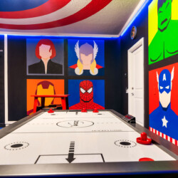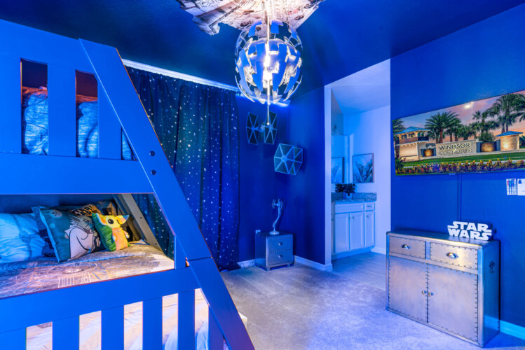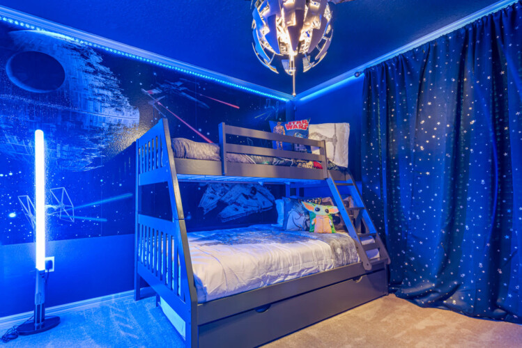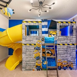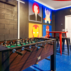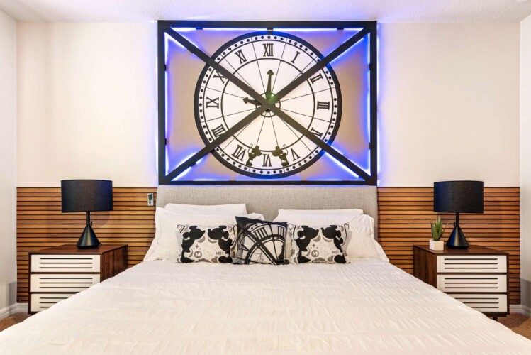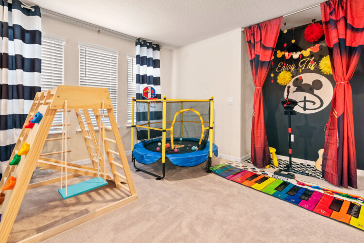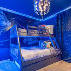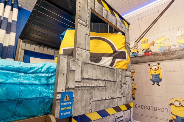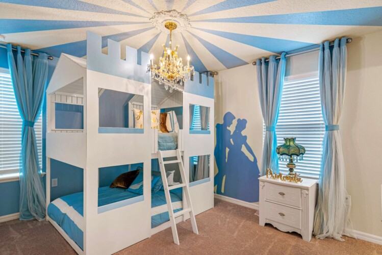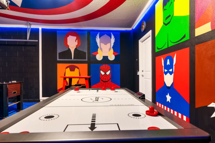 Enjoy the superhero-themed game room and a second-floor kids’ corner with a magical Mickey karaoke stage. Sleeping arrangements include: