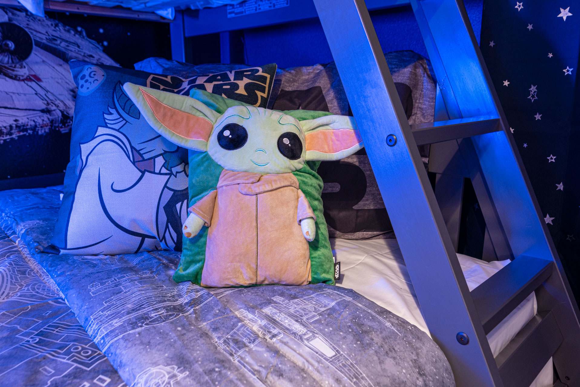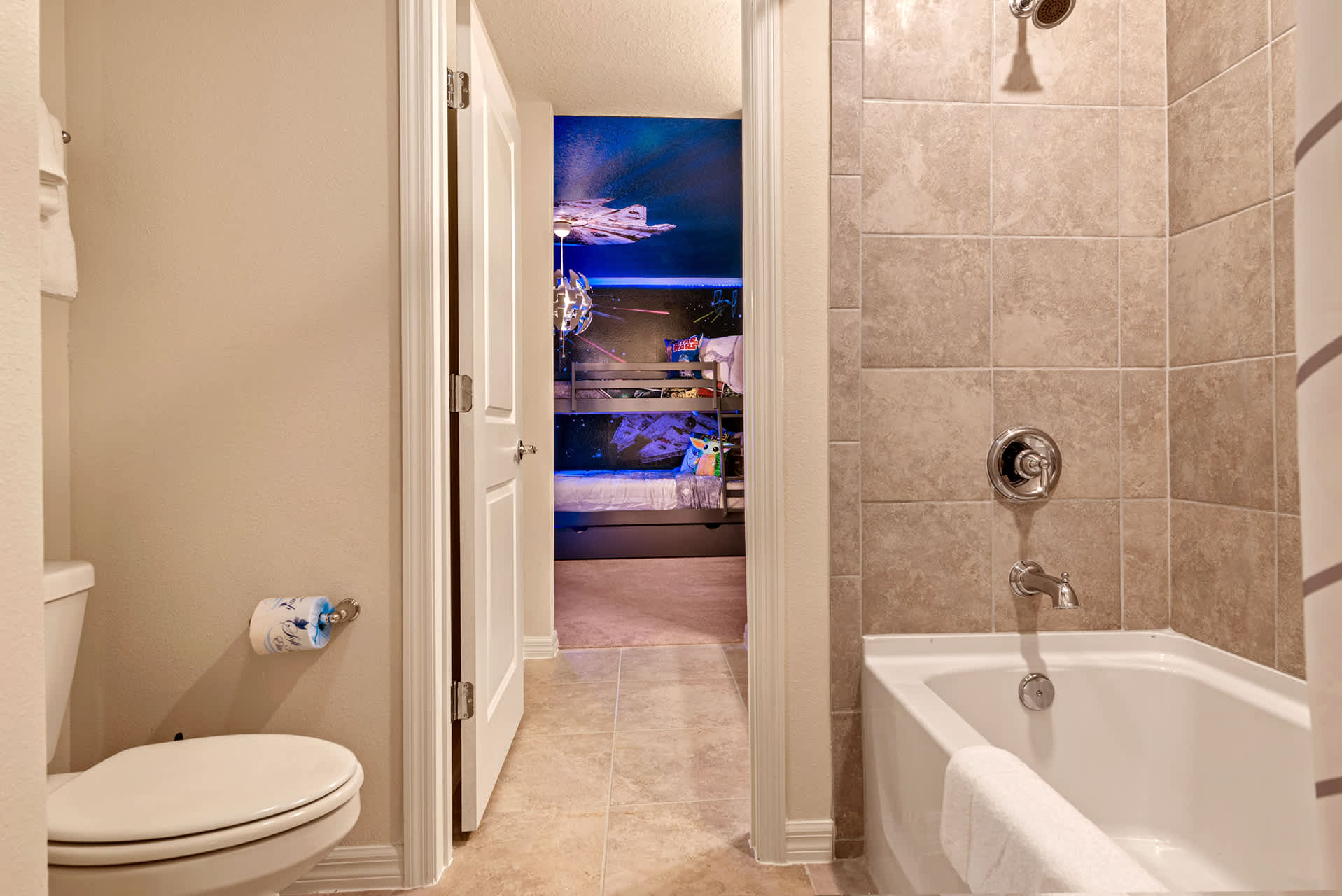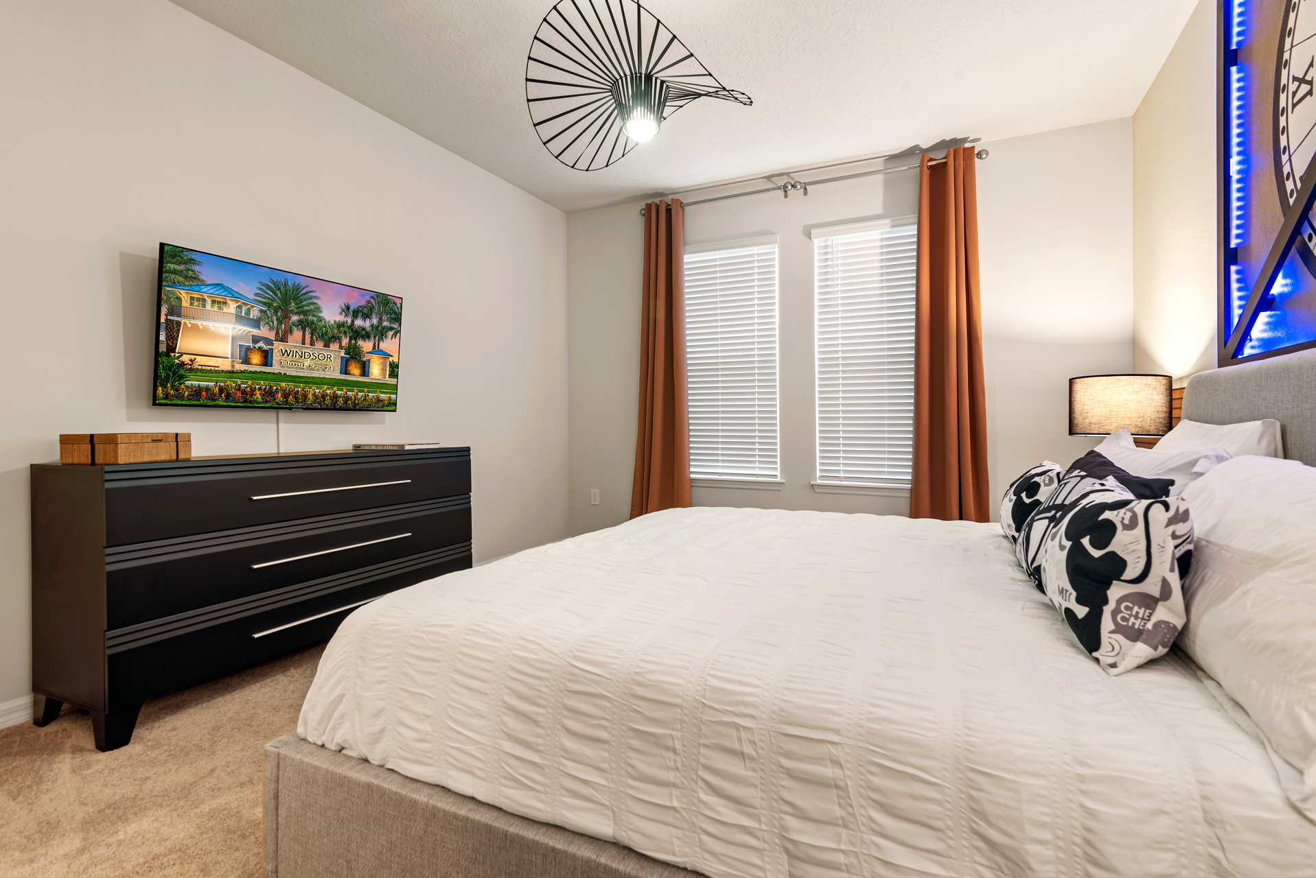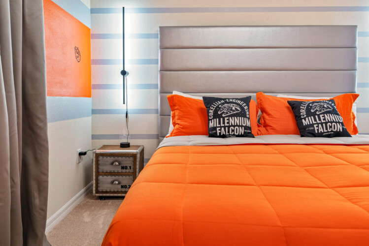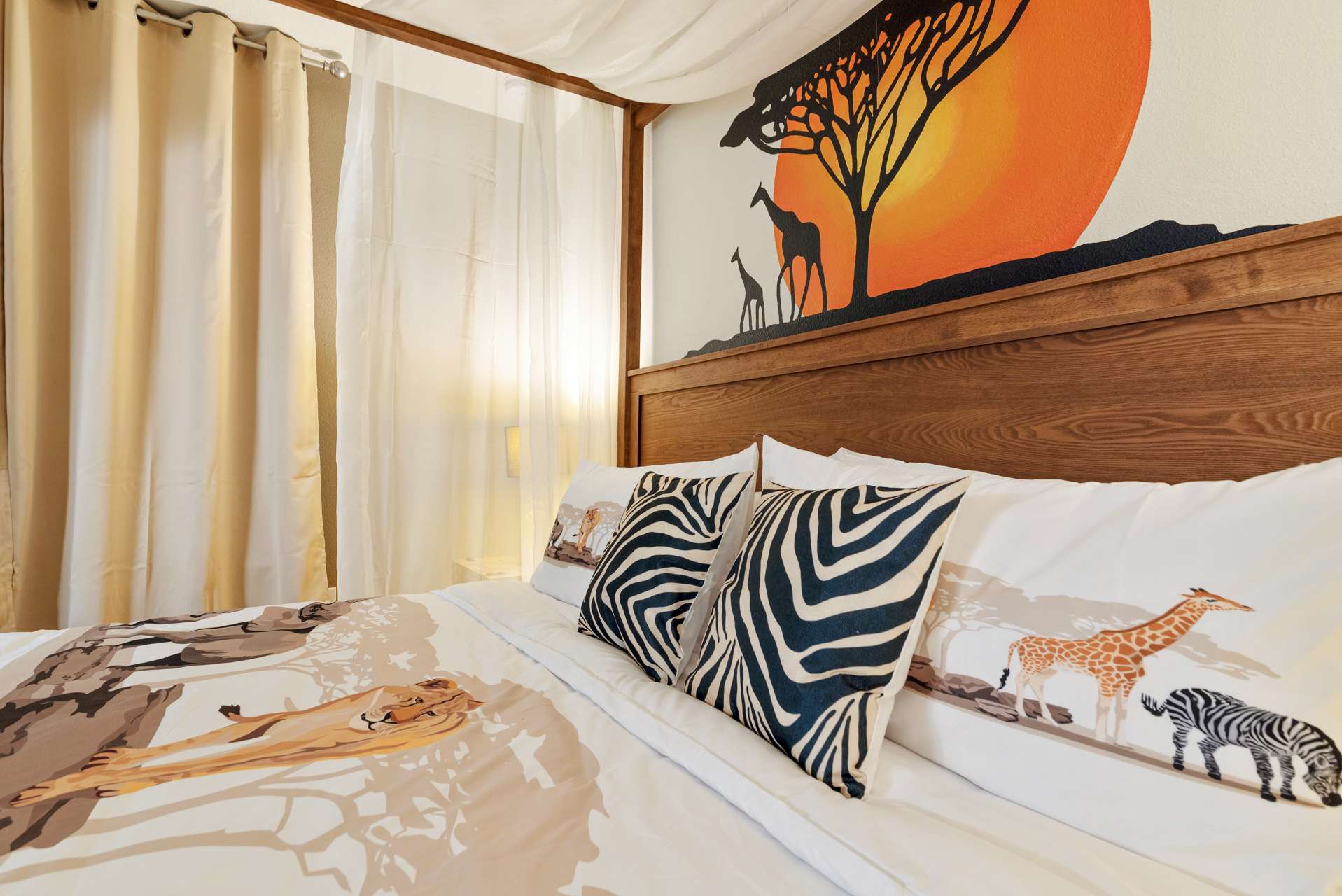 Enjoy the superhero-themed game room and a second-floor kids’ corner with a magical Mickey karaoke stage. Sleeping arrangements include: