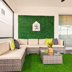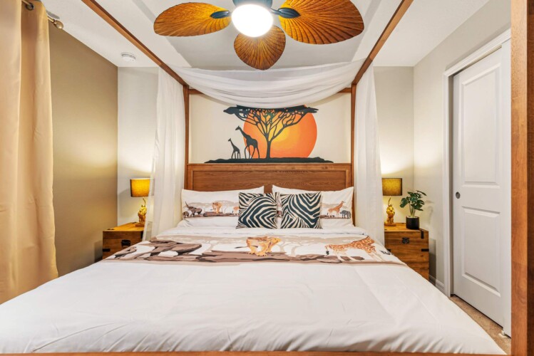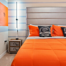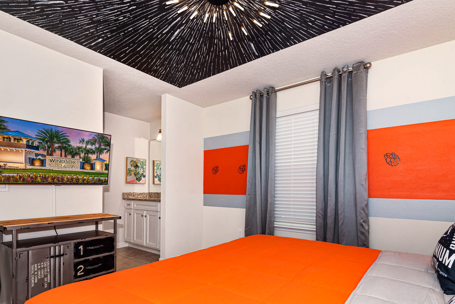 Relax in the pool and spa, or enjoy a BBQ on the terrace. Essential amenities like air conditioning, bed linens, and a coffee maker ensure a comfortable stay. The villa’s vibrant decor and thoughtful design create an unforgettable ambiance for your Orlando adventure.