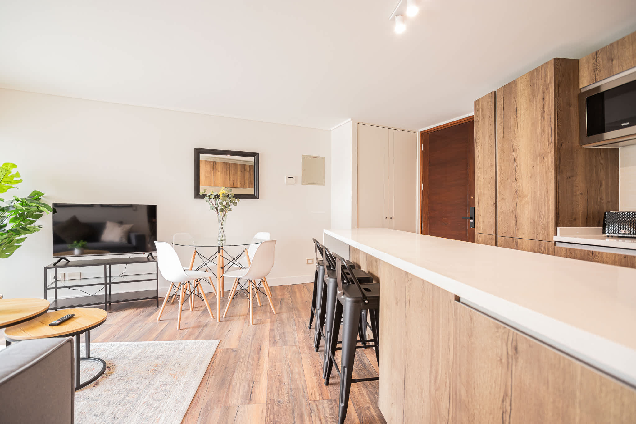 During your stay, you will have access to enjoy all areas of the apartment, including fully furnished bedrooms with beds, clean sheets, and fresh towels. The kitchen is equipped with basic utensils, pots, pans, glasses, mugs, and plates, as well as a refrigerator, toaster, and kettle, so you can prepare your meals and snacks whenever you like. Enjoy complete privacy in our apartment, and we are confident that your stay with Andes STR will be exceptional!