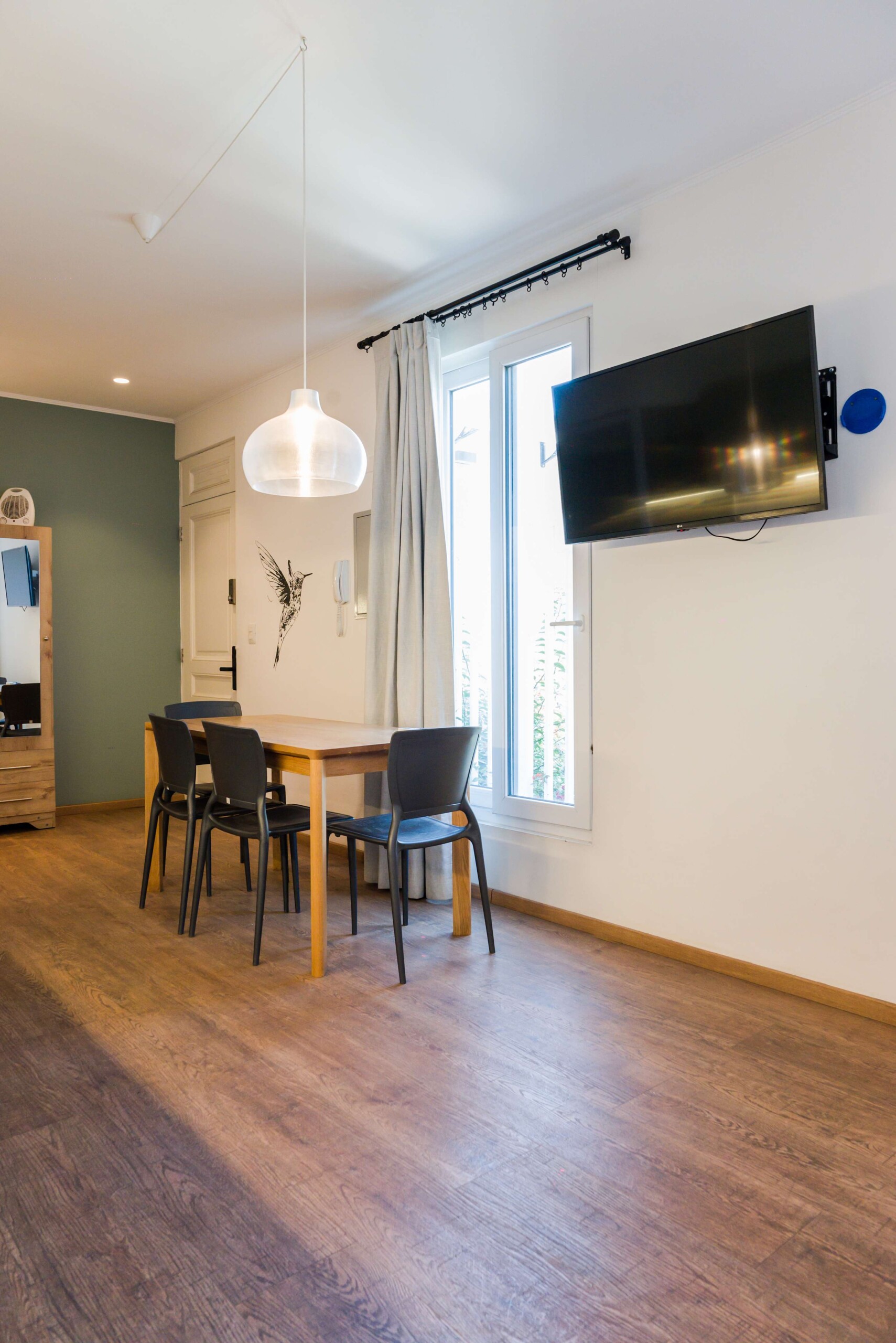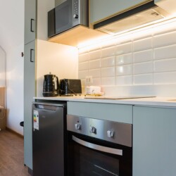 Stay connected with high-speed wireless internet, and enjoy the convenience of an iron and hair dryer. The smoke detector ensures safety, creating a perfect urban retreat.
