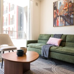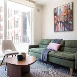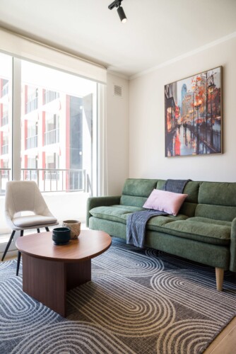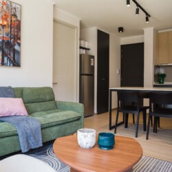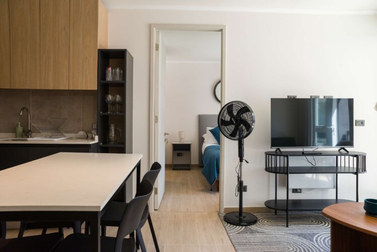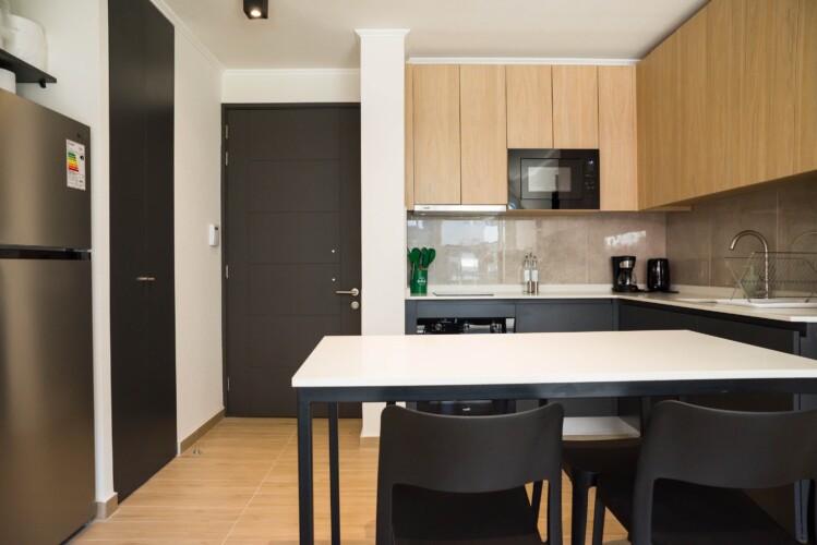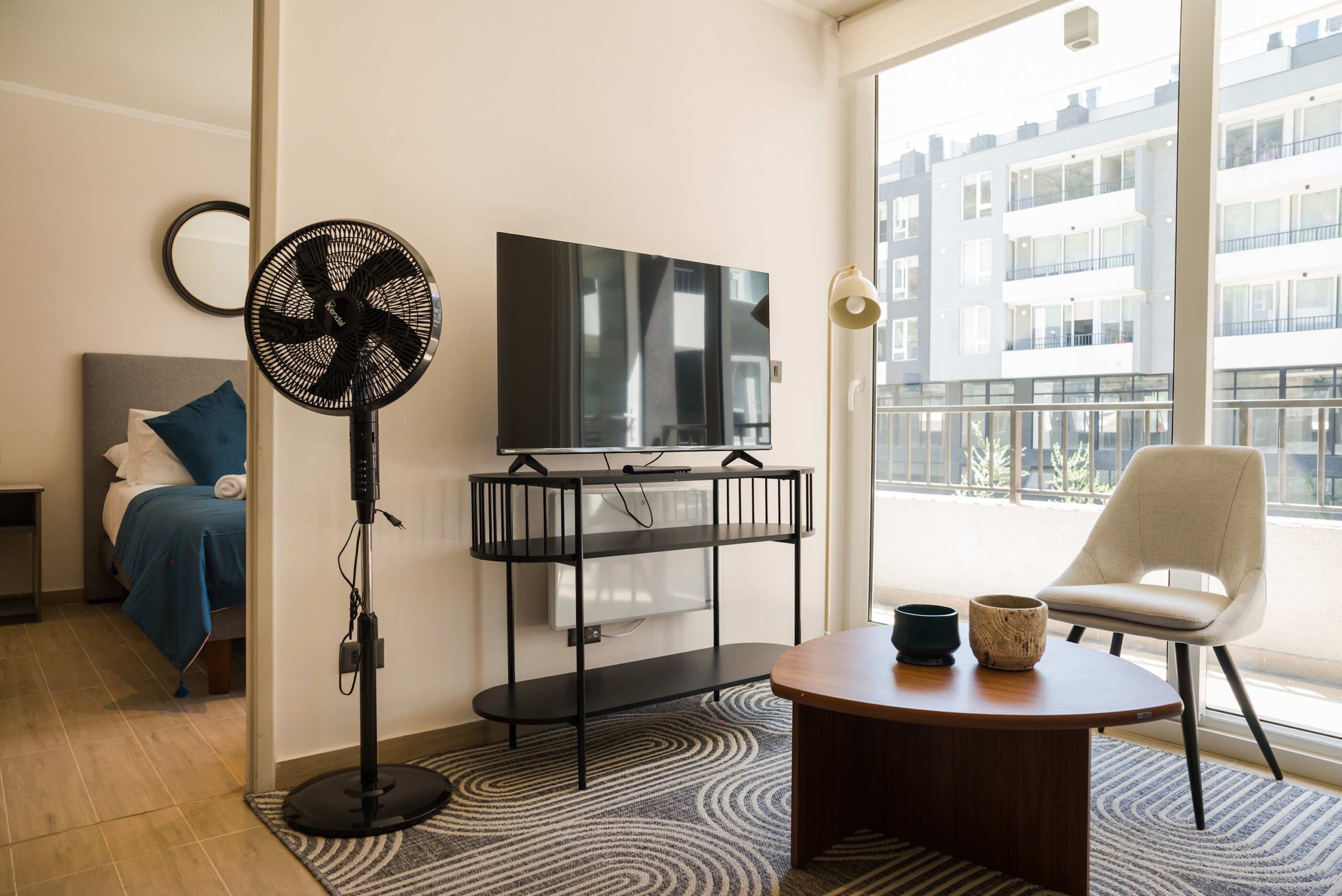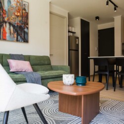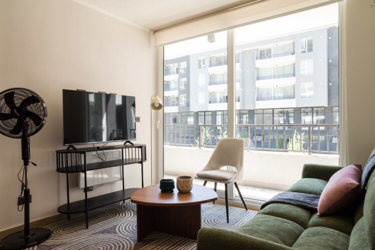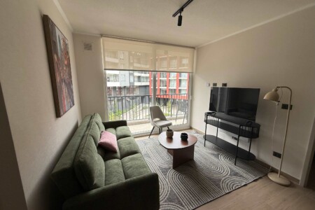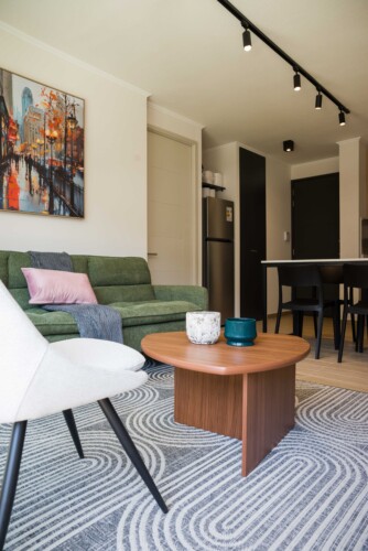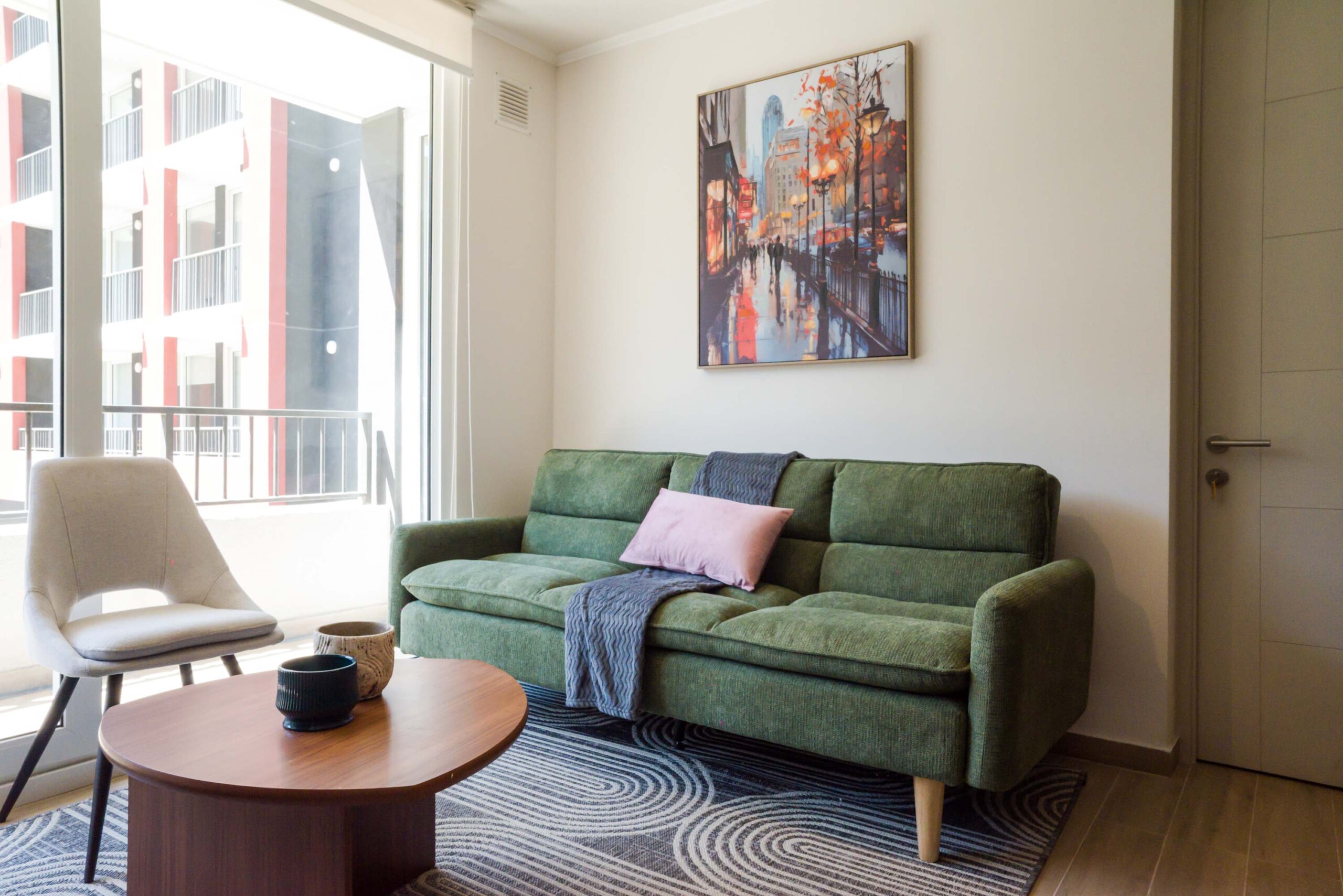 Step into this stylish Providencia apartment, where comfort meets modern elegance. The open-concept living area invites you to unwind, featuring cozy seating and a dining space perfect for shared meals.