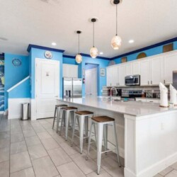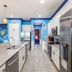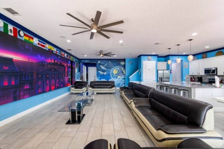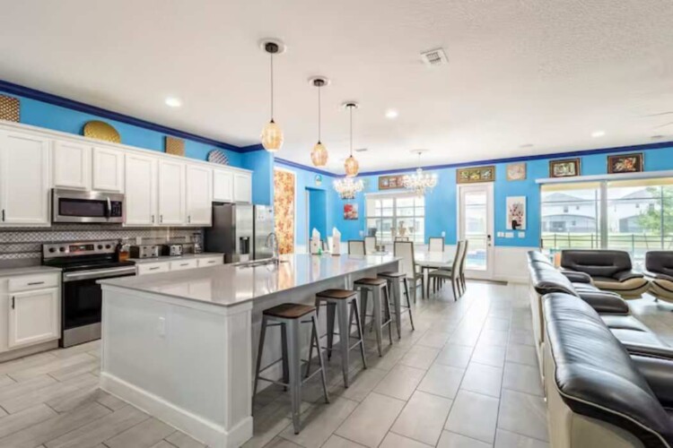 There is plenty of open space for group gatherings (living room), with a massive Kitchen Island with additional chairs for the group to enjoy quality meals together. The Kitchen is fully equipped for the most discerning chef.