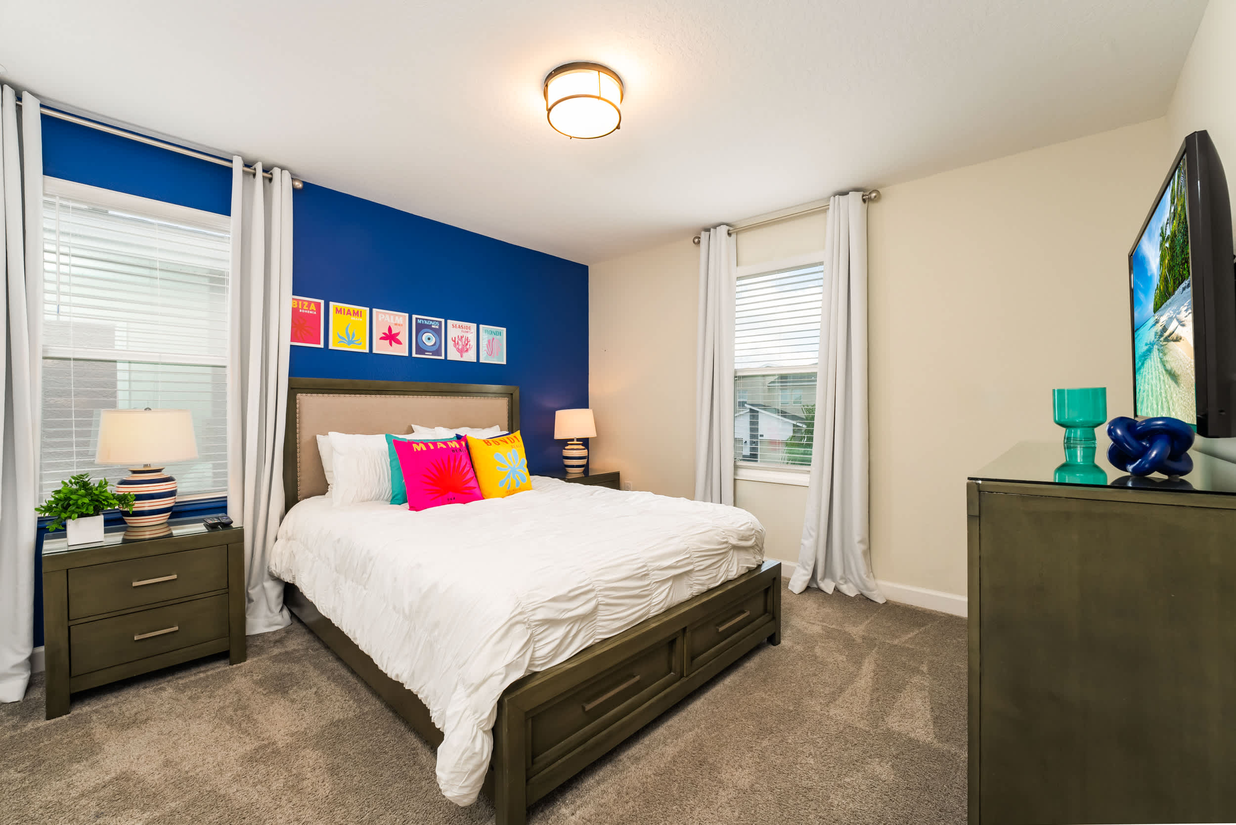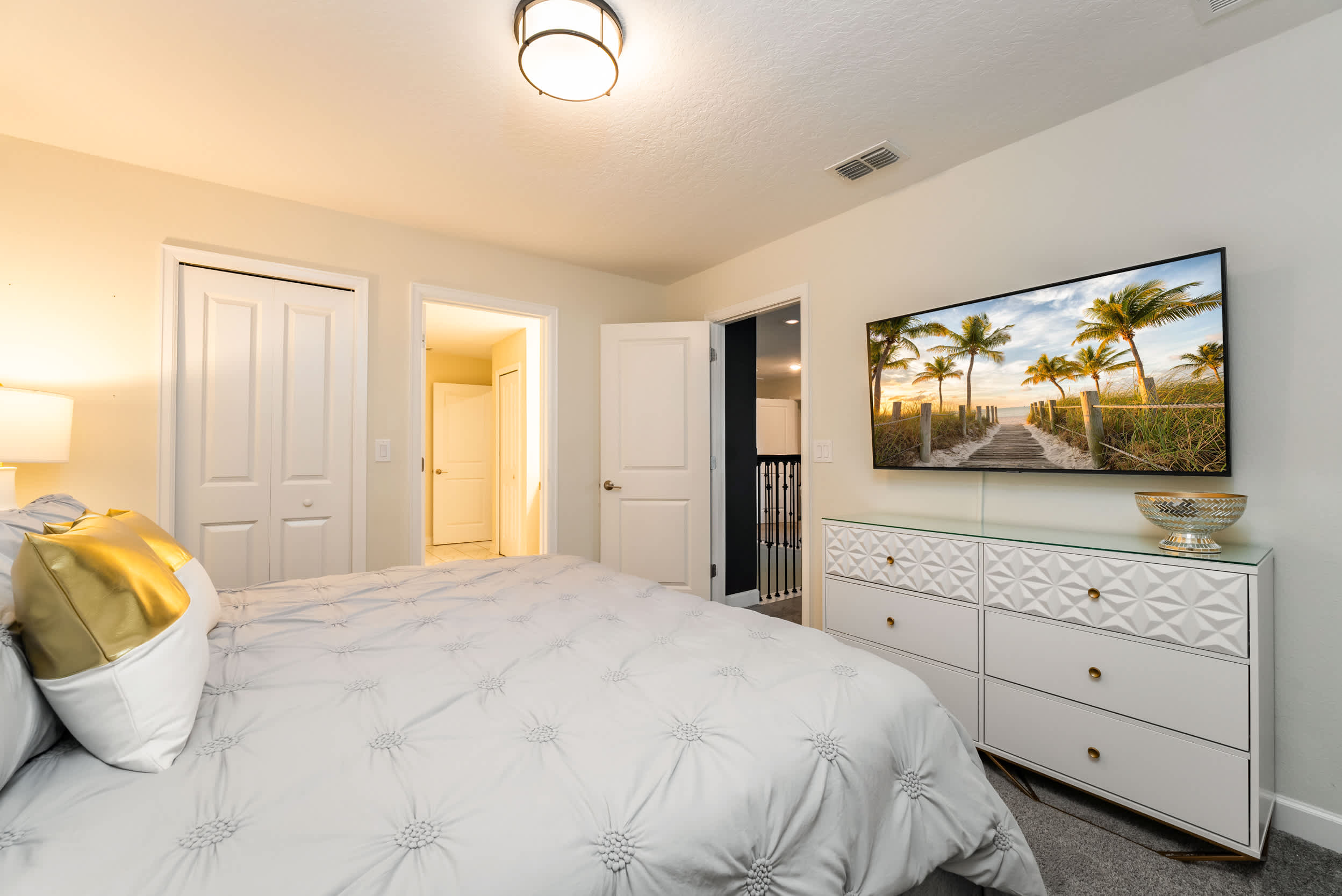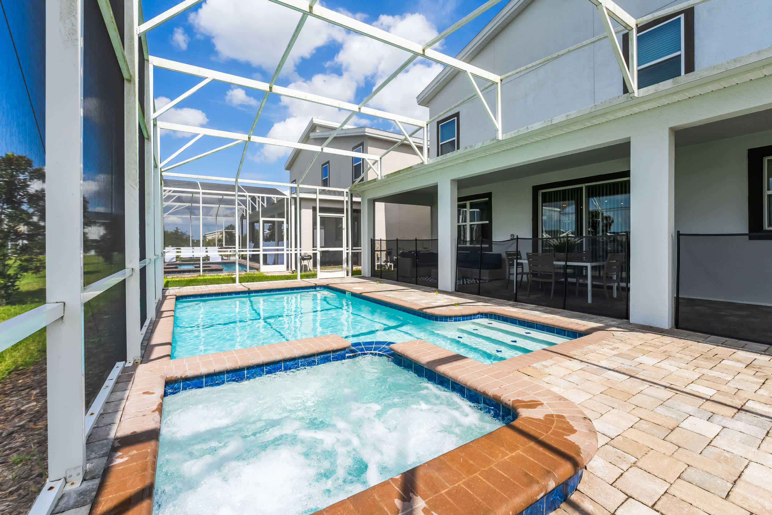 Discover your perfect getaway at our luxurious 9-bedroom villa in Davenport, accommodating 21 guests. Nestled in the prestigious Champions Gate Resort, this spacious retreat is ideal for family vacations or mature gatherings. Enjoy modern comforts with air conditioning, cable TV, and a fully equipped kitchen featuring a dishwasher and dryer. Located minutes from Orlando’s top attractions, our villa is a serene escape from the hustle and bustle. Book now for an unforgettable stay surrounded by comfort and convenience.