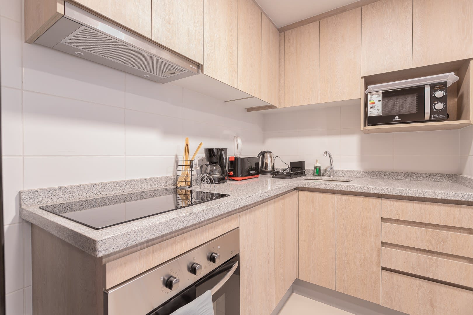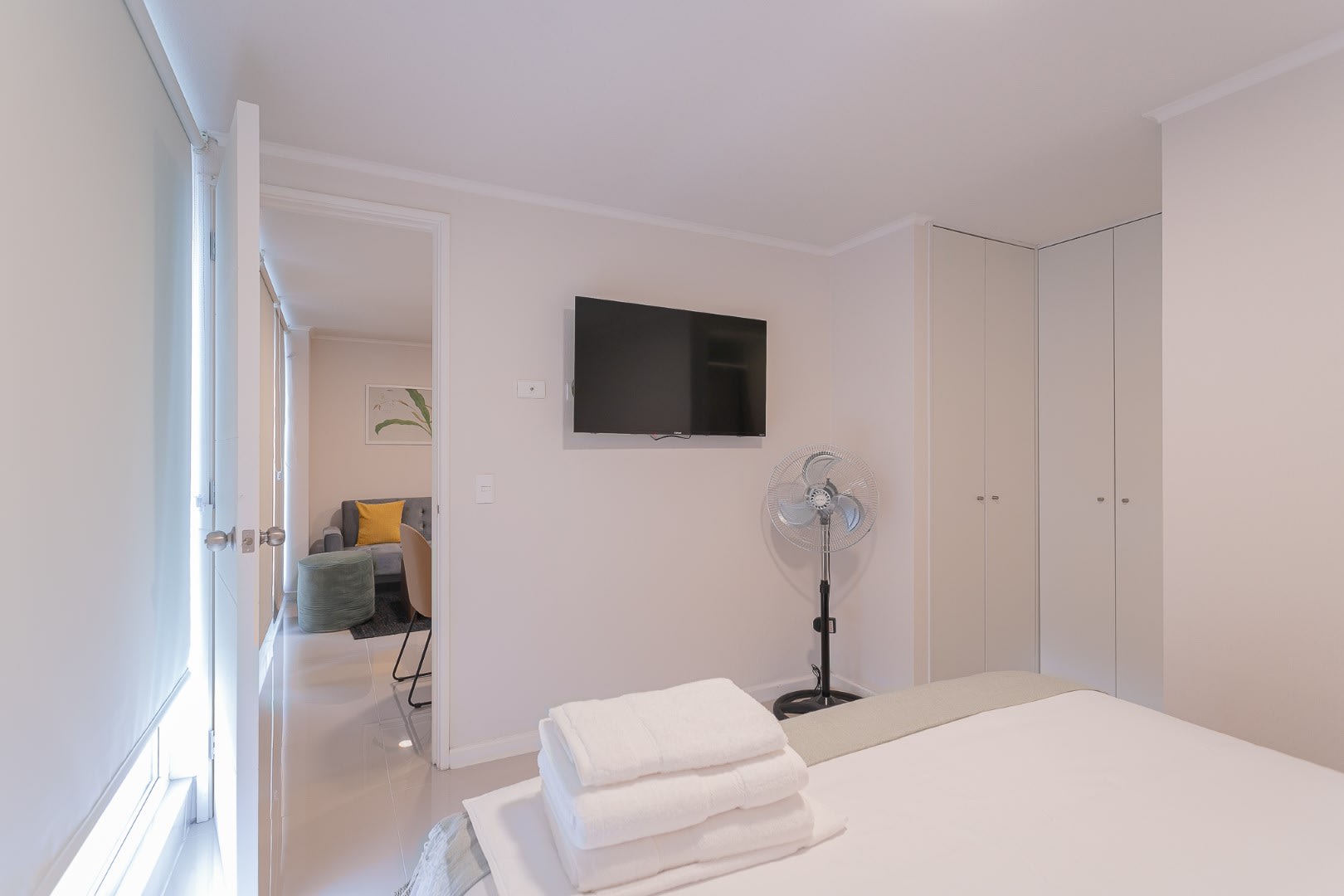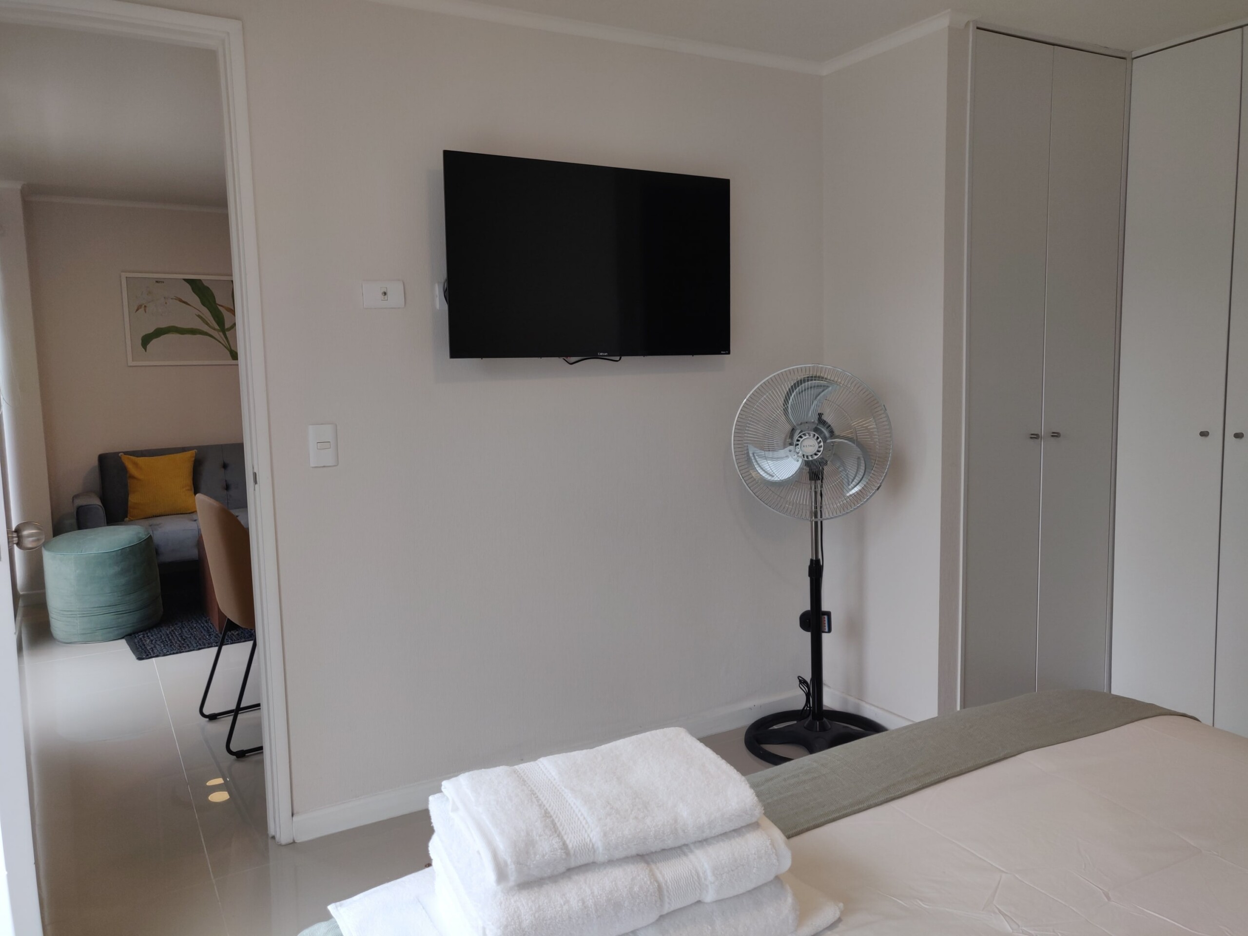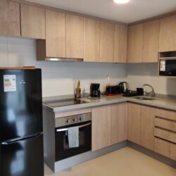 The apartment is fully furnished and equipped, providing everything you need to feel at home. It includes a kitchen, microwave, and basic cooking utensils so you can prepare meals or snacks at any time. Additionally, if you’re here for work, don’t worry—we have WiFi to ensure you’re always connected during your stay. The master bedroom features a double bed, TV, and an en-suite bathroom with a welcome pack including toilet paper, soap, and towels.