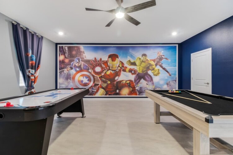 The home is beautifully furnished with impressive theme room decor and a large theatre room for hours of fun!