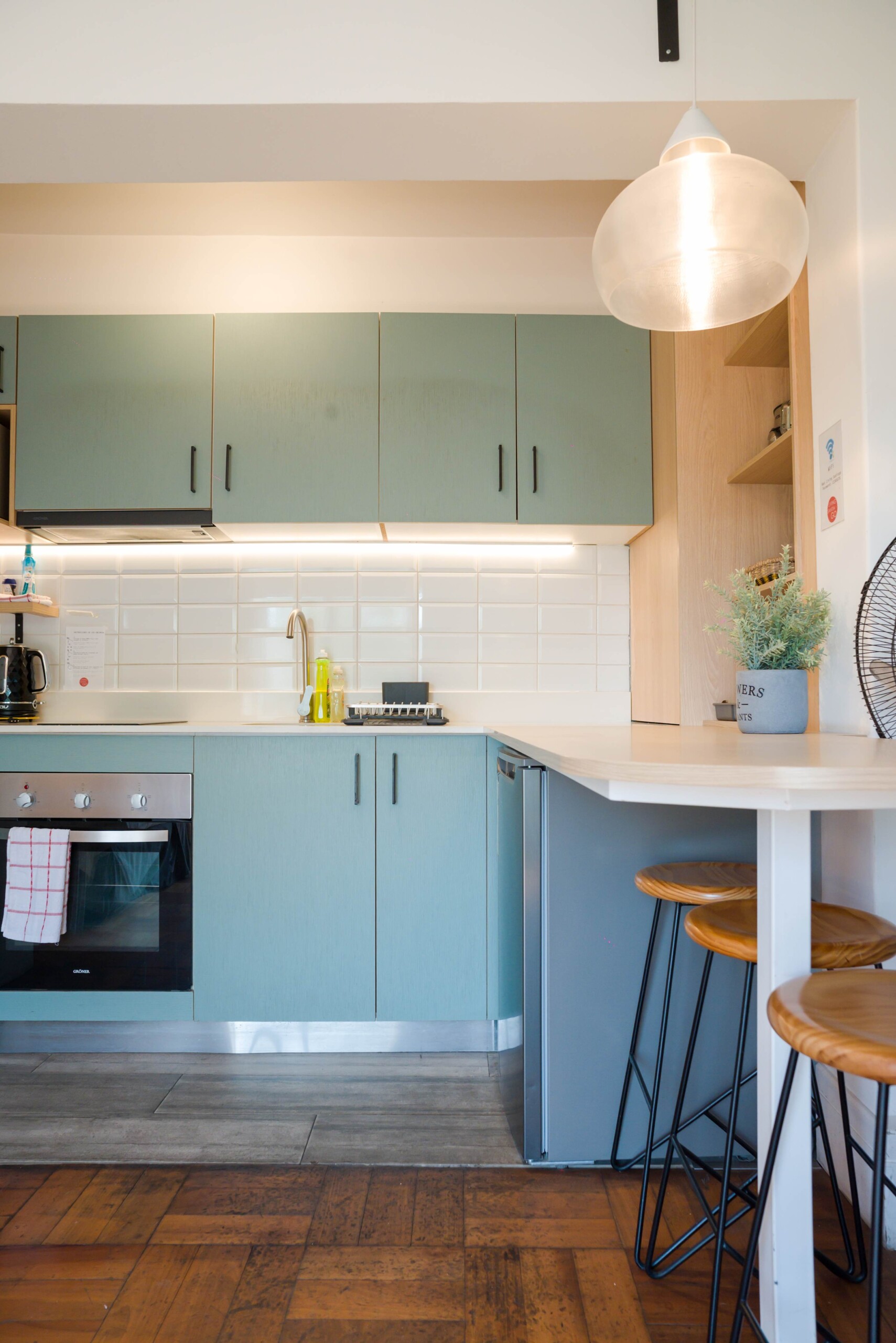 – **Dining**: Savor your culinary creations with elegant wine glasses at the intimate dining nook.