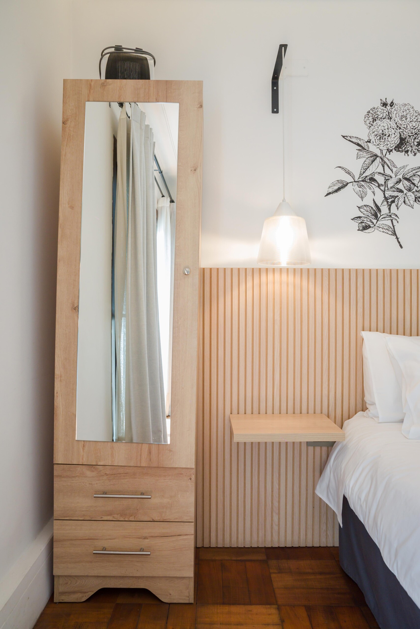 – **Sleeping Arrangements**: A plush bed promises restful nights, complemented by ample storage with hangers for your convenience.